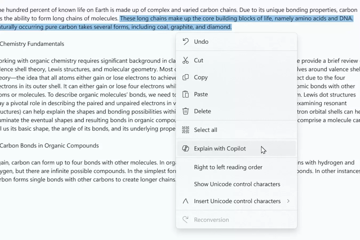 С учетом того, что Microsoft «закрыла» WordPad, очевидно, что некоторые функции для подсчета слов, строк и количества символов перекочевали в «Блокнот». Помимо этого «Блокнот» обзавелся поддержкой Copilot, за счет чего можно быстро узнать значение того или иного слова или даже целой фразы.